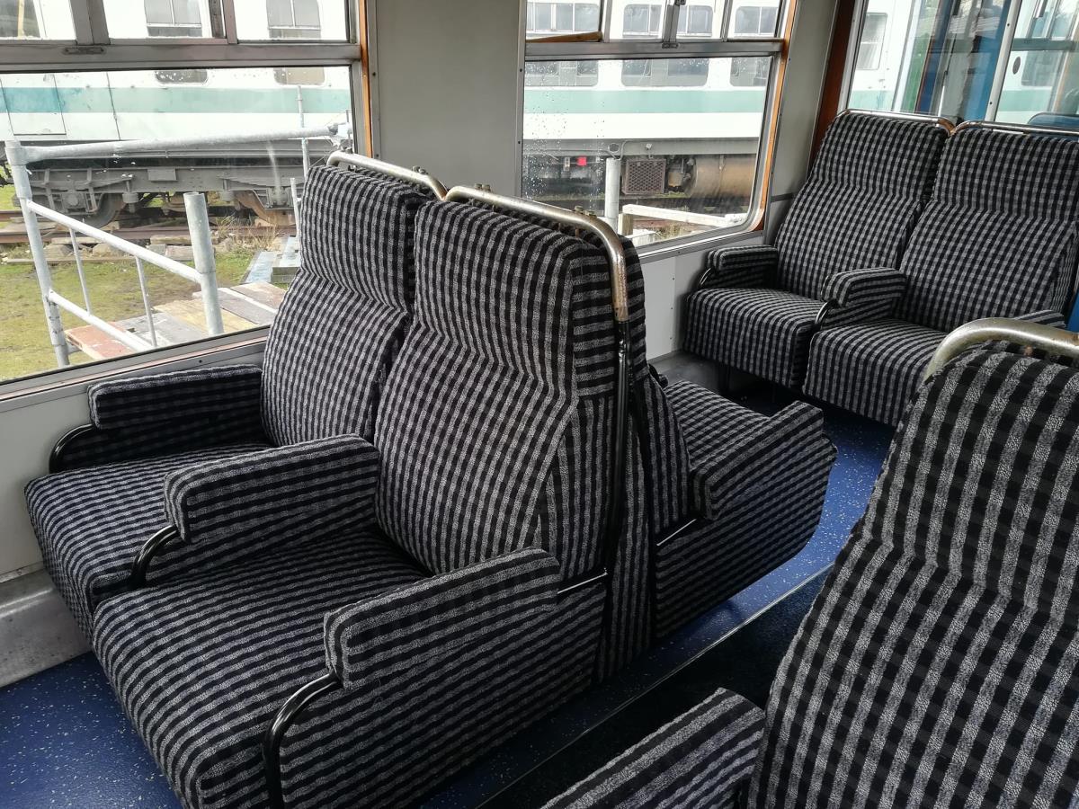 - Complete refurbishment of First-Class seating area, restoration of imitation wood compartment walls and doors, fitting of recovered seating and new flooring.