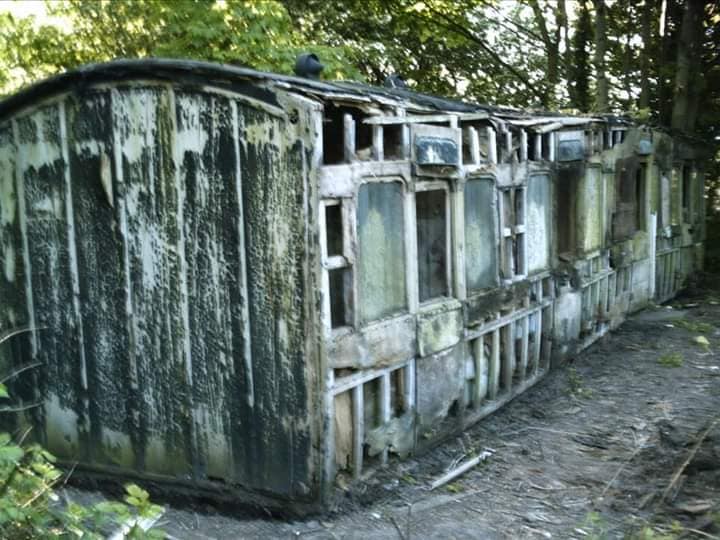 Telephoning Dennis Goy, another PWRS member from the car park of St. Nicholas Owen Church at Stanah, David, having decided to find this carriage, said he was looking through the trees at what looked like the end of a railway carriage in an overgrown area of a farmer's field on Raikes Road, Stanah.